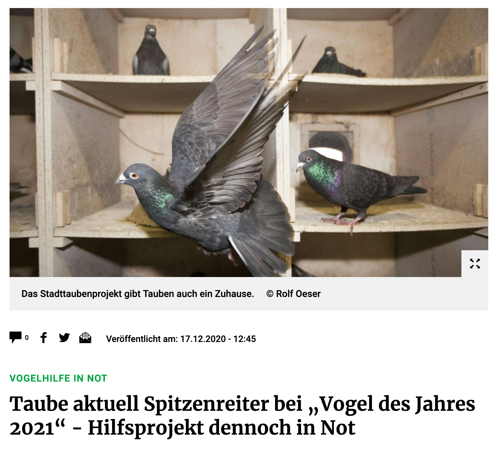 23. Dezember 2020 TaubenFreunde Frankfurter Rundschau vom 17.12.2020 – Weiterleitung zum Artikel bitte anklicken
